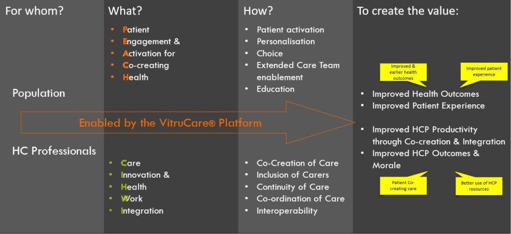We developed and deployed at scale a turnkey award-winning, versatile and scalable digital Patient Engagement Platform called VitruCare® to deliver personalised healthcare for wellness, prevention, management of longterm conditions and end of life care.